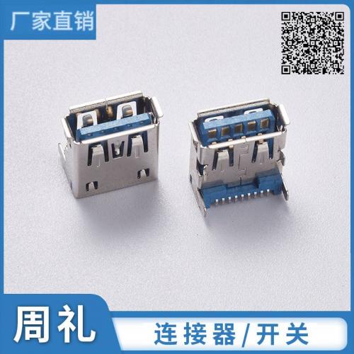 TYPE-C 16P 立插母头 板上高度H_8.8-9.3-10.0-10.5MM 四脚插板