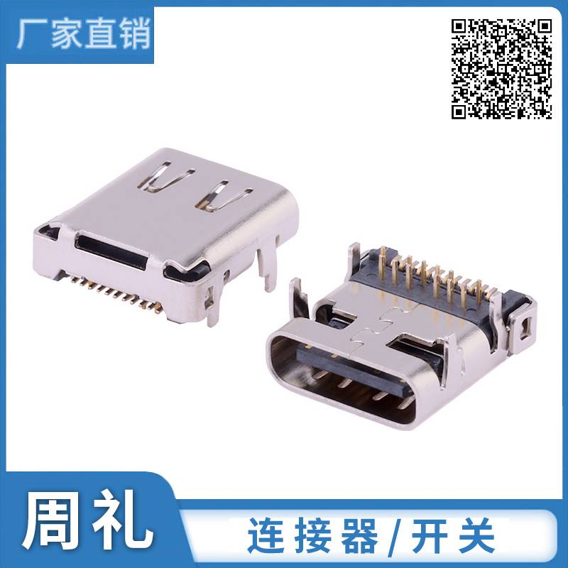 TYPE-C F 24P 前插后贴DIP_SMT板上型9.87L半包带弹