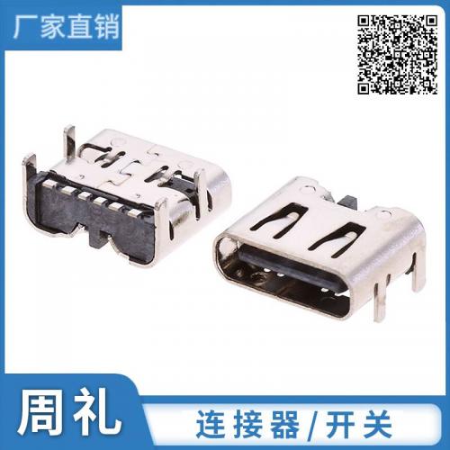 USB 3.1TYPE-C 6P 母座 90度卧式四脚插板带弹L6.5-6.8MM DIP_SMT