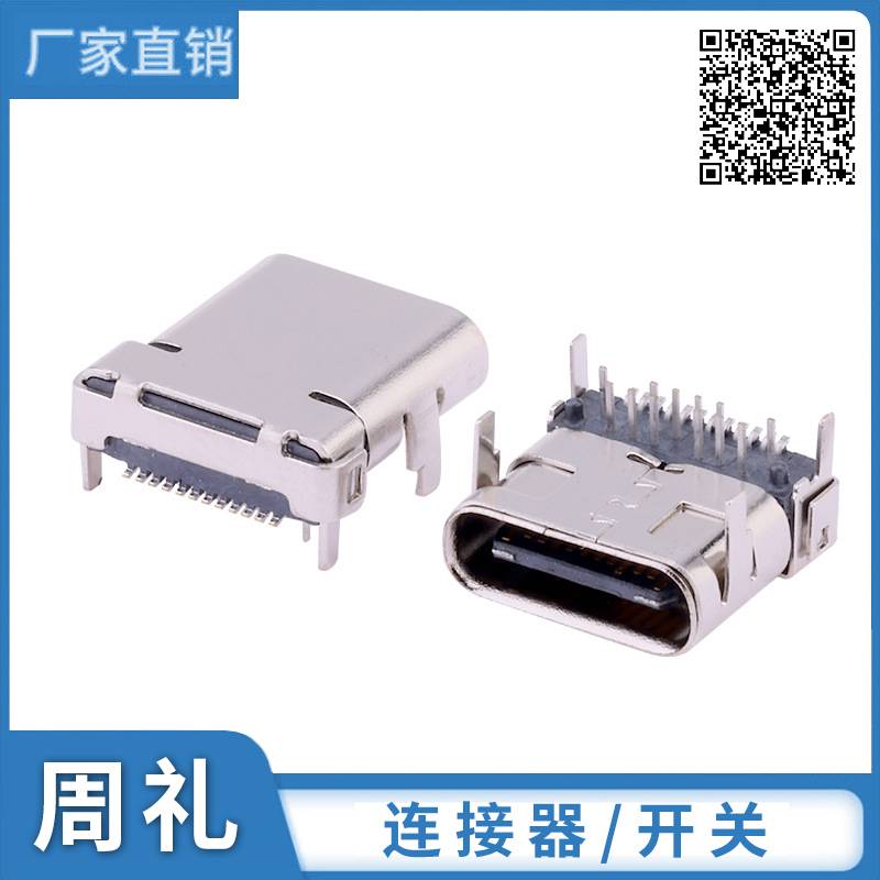 TYPE-C 24P 立贴母座 15.0MM 牛角 大底座 USB3.1座子大电流