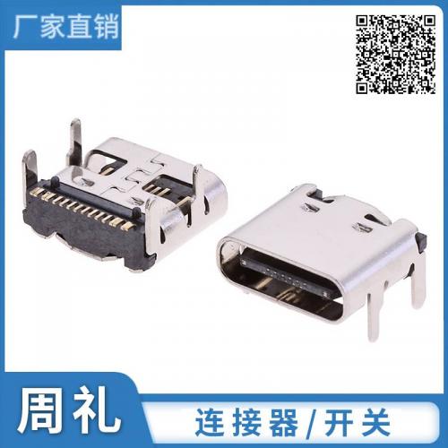 TYPE-C 6P母座 立式四脚插板H10.0-10.5-11.5MM DIP_SMT 大电流