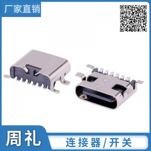 TYPE-C 6P 母座 四脚全贴 L_6.5-6.8MM SMT 板上型