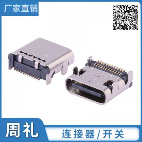 TYPE-C 24P 双贴母座 六孔 双排针 四脚插板DIP_SMT USB3.1大电流