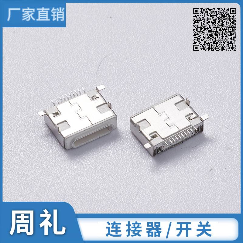 TYPE-C 6P母座 立式四脚插板H10.0-10.5-11.5MM DIP_SMT 大电流