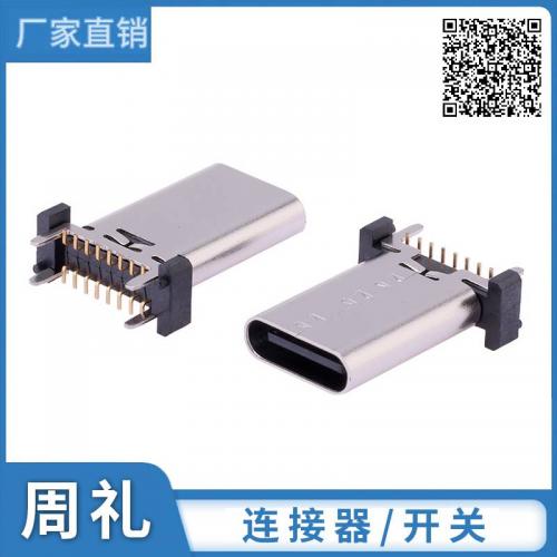 TYPE-C 16P 立贴母座 H_12.4-13.1-13.7-15.0MM USB 3.1 四脚插板