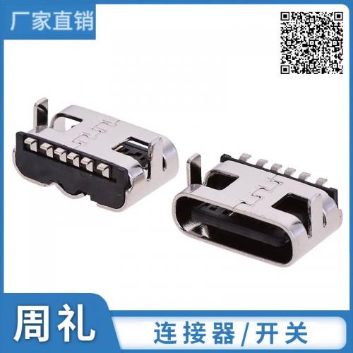 连接器 USB 3.1 TYPE-C 6P 母座两脚插板H5.0-5.5 90度SMT 板上型