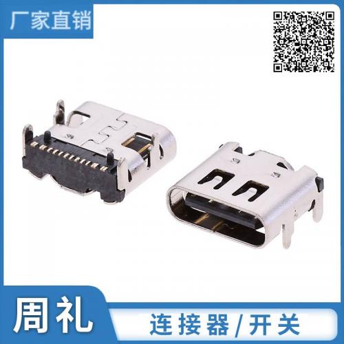 62680 欧盟认证 USB 3.1 TYPE-C 16P 母座带弹 四脚插板 7.35