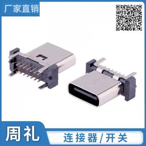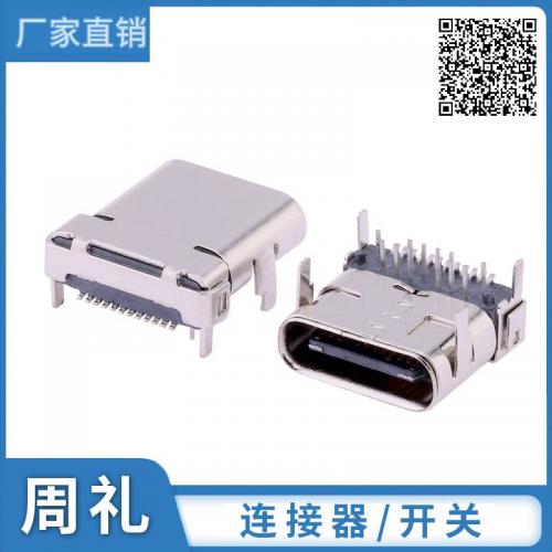 TYPE-C 16P 立插母头 板上高度H_8.8-9.3-10.0-10.5MM 四脚插板