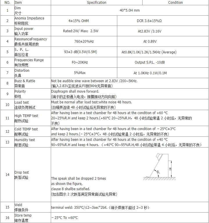 动奇喇叭40mm双耳对讲机语音播报点读医疗设备耐高温人声清4Ω2W