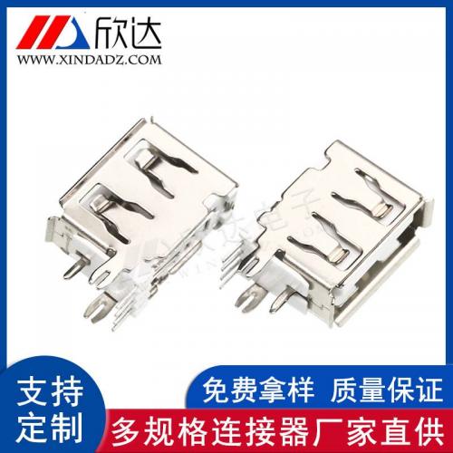 工厂直供 10.0mm卧式卷边铁壳usb连接器母座 侧插USB插脚插座
