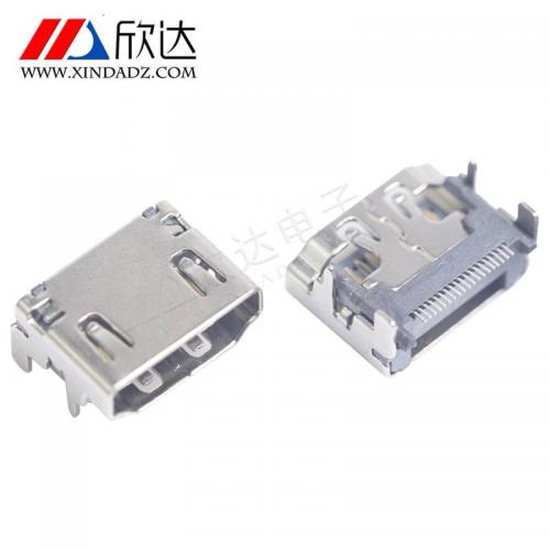 工厂直销HDMI连接器母座贴片 传输接口无耳无凸点镀镍铁壳四脚插