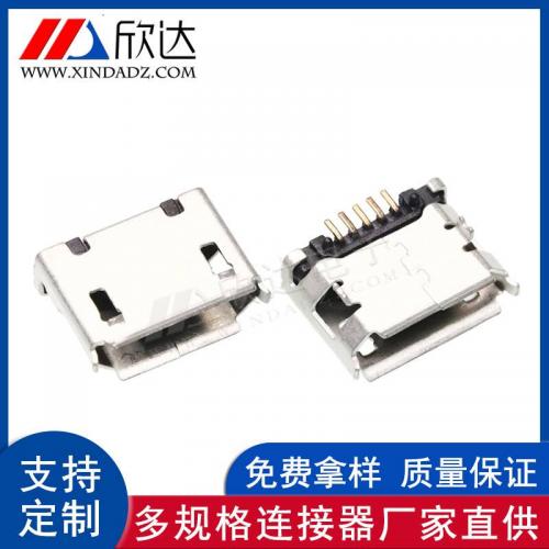 厂家直供 micro母座 5.9mm有柱卷边 铜壳铁壳 USB连接器 编带插座