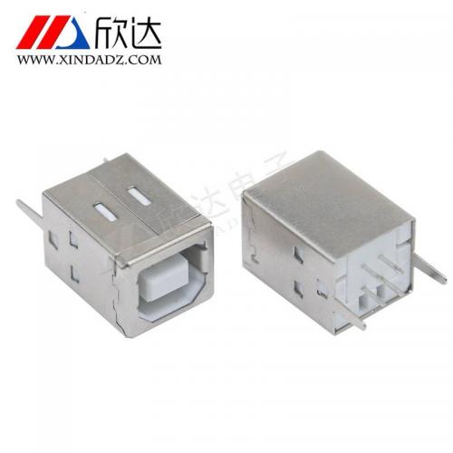 厂家直供 USB母座连接器BF 180度 铁直白胶10mm白胶B型母座插座