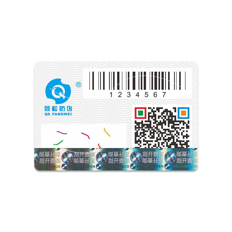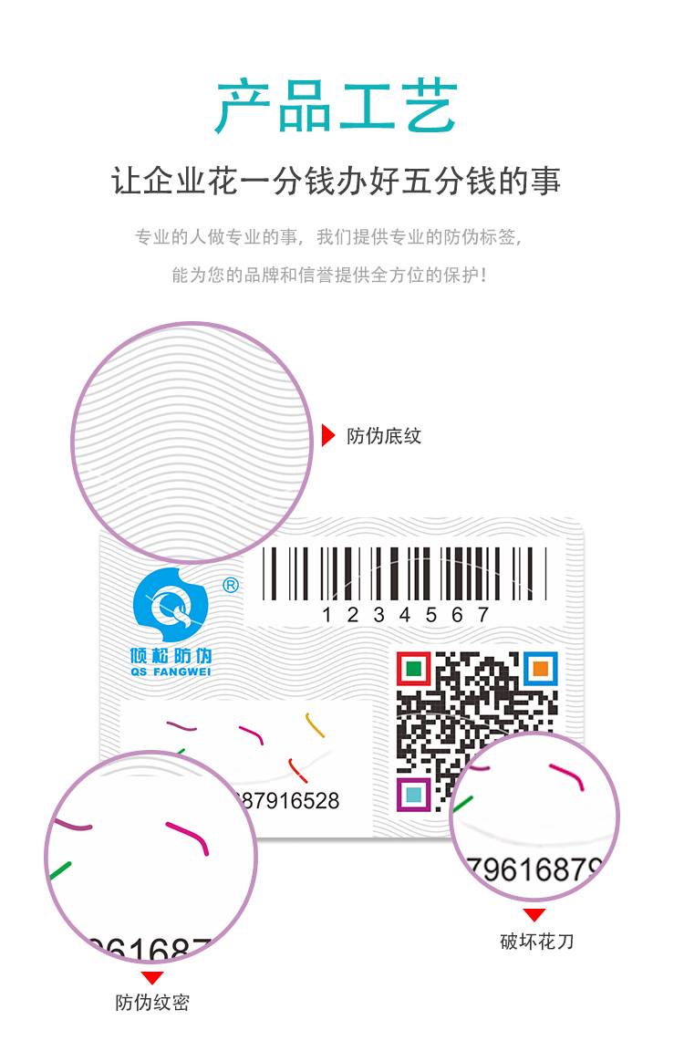 定制破坏花刀防伪标签,起到防揭防转移的效果,揭开被破坏,不能重复使用。