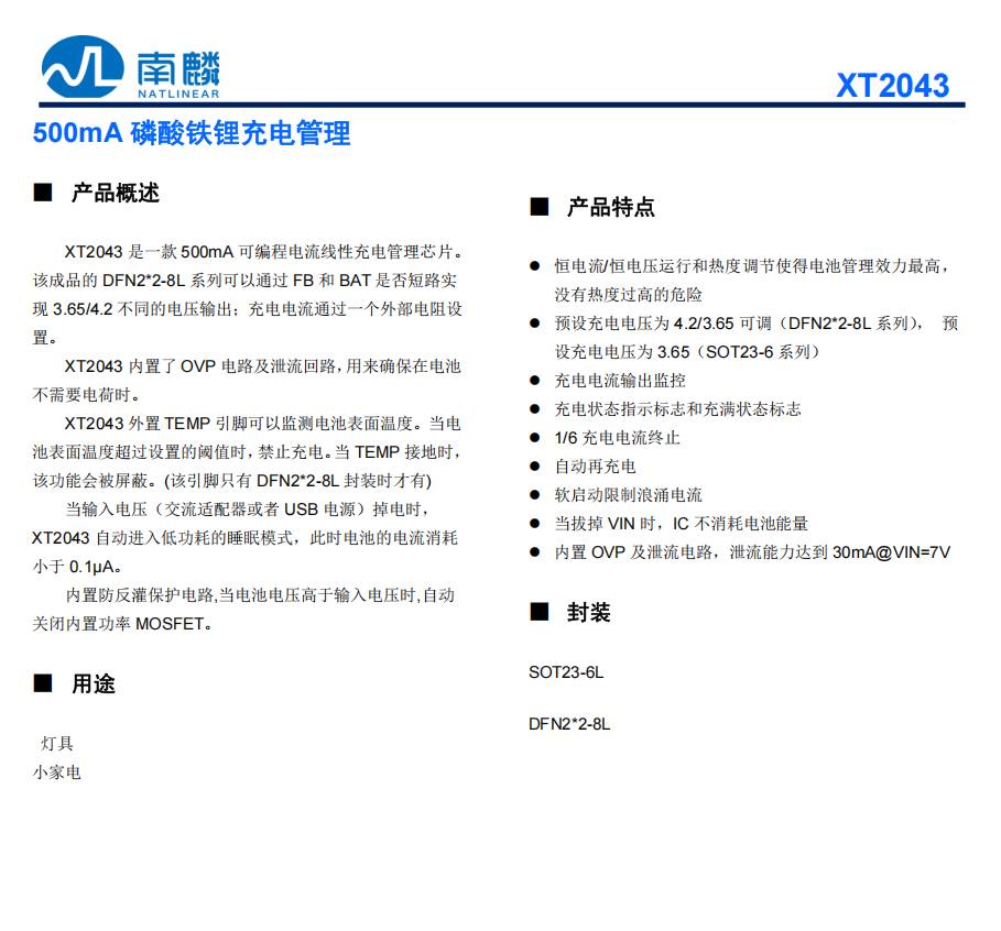 XT4077 1A 具有 USB 接口兼容的线性电池管理芯片