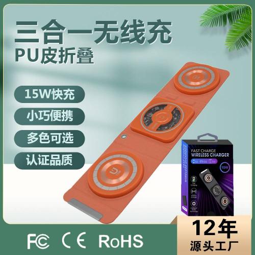 皮革透明折叠三合一无线充