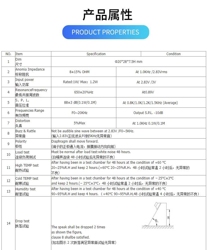 动奇20*28 8Ω2w 正面出音AI玩具卡片机思维机智能家居点读笔专用