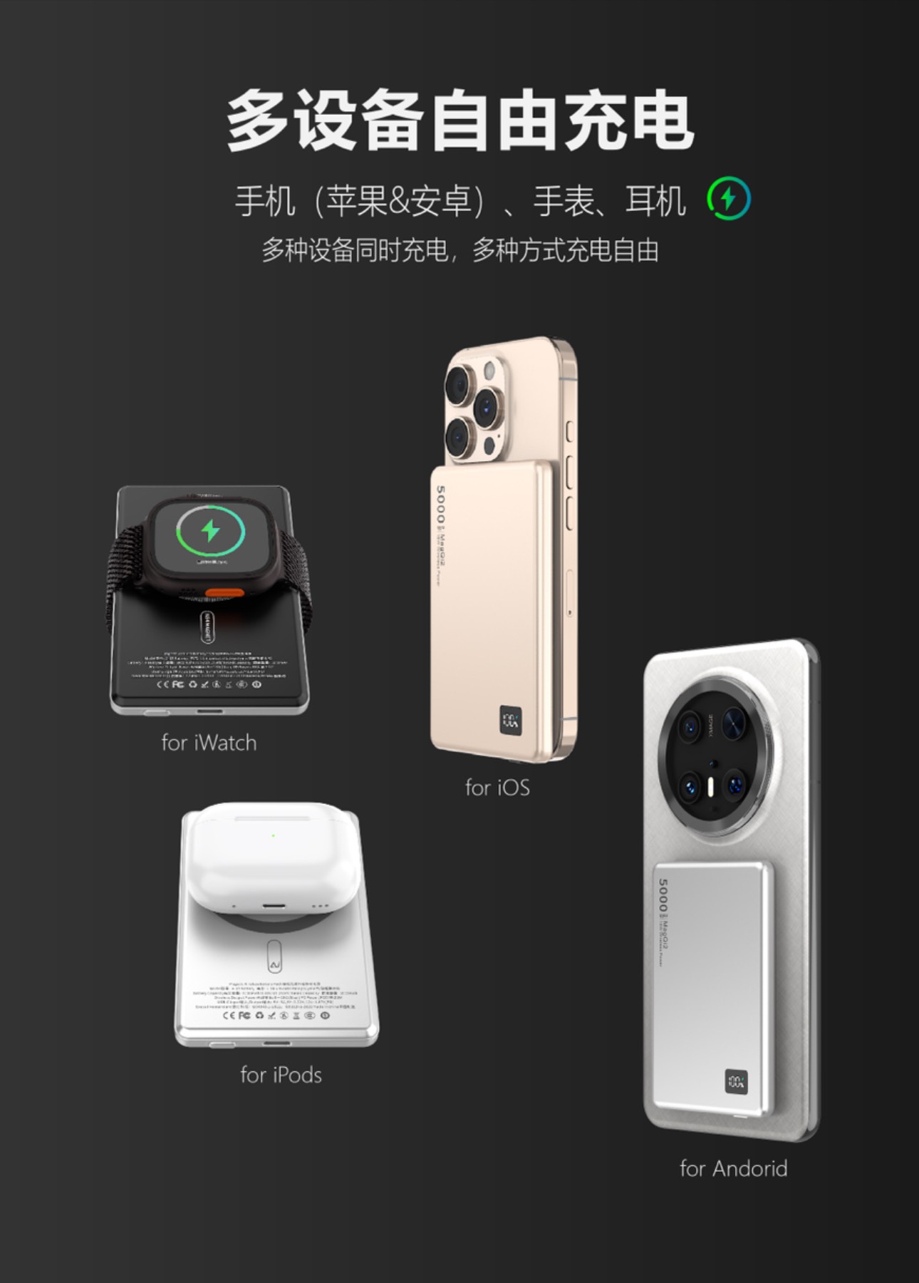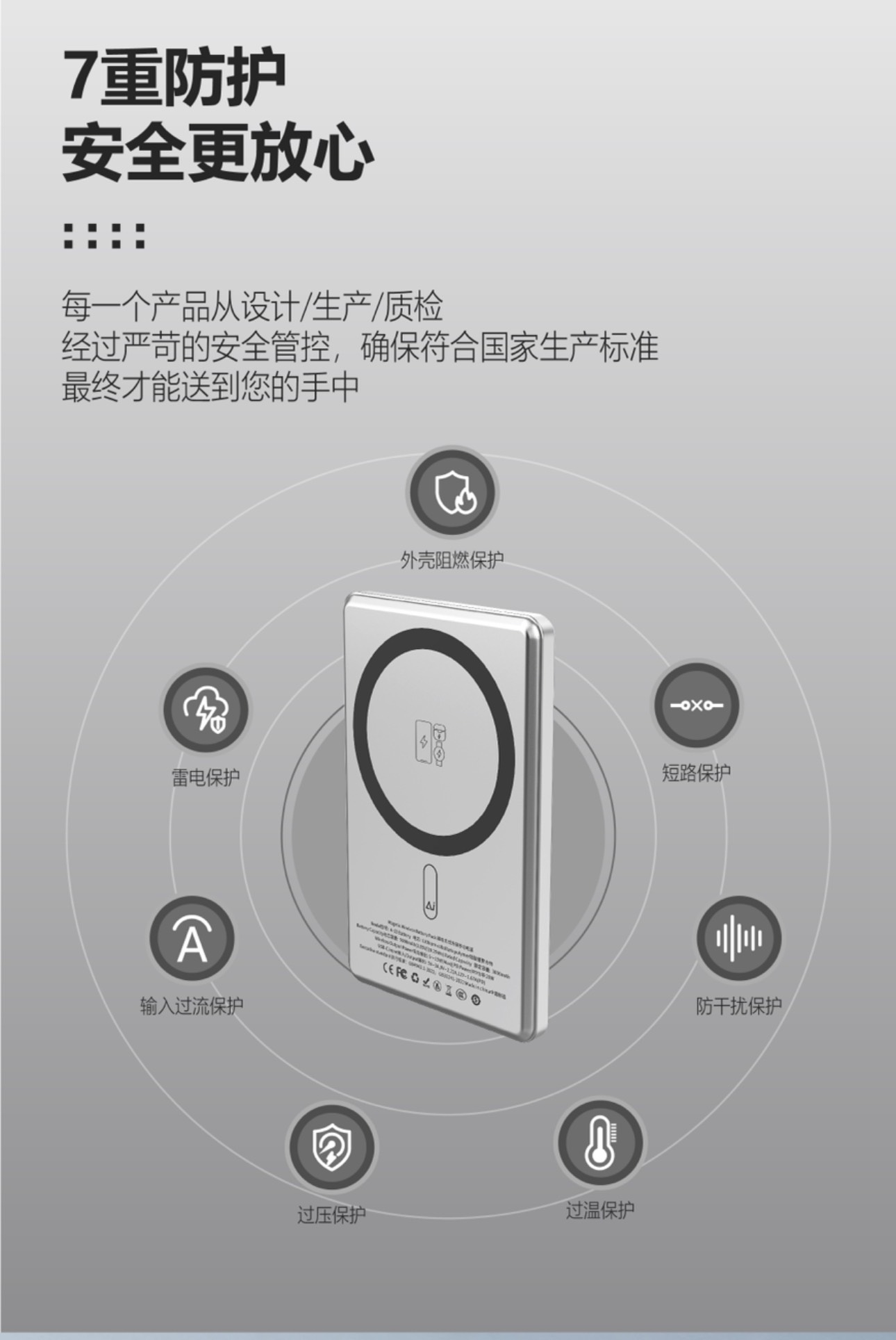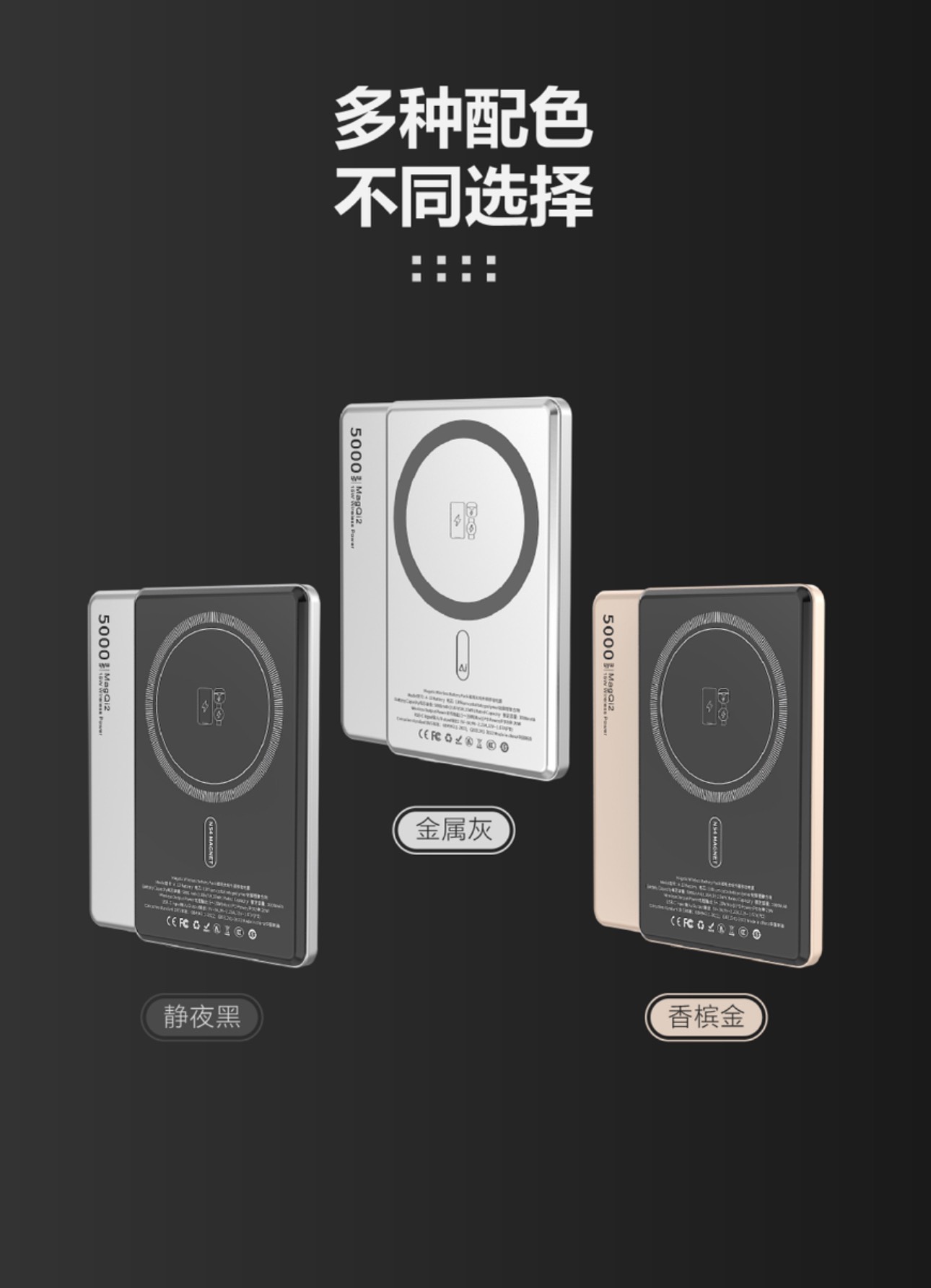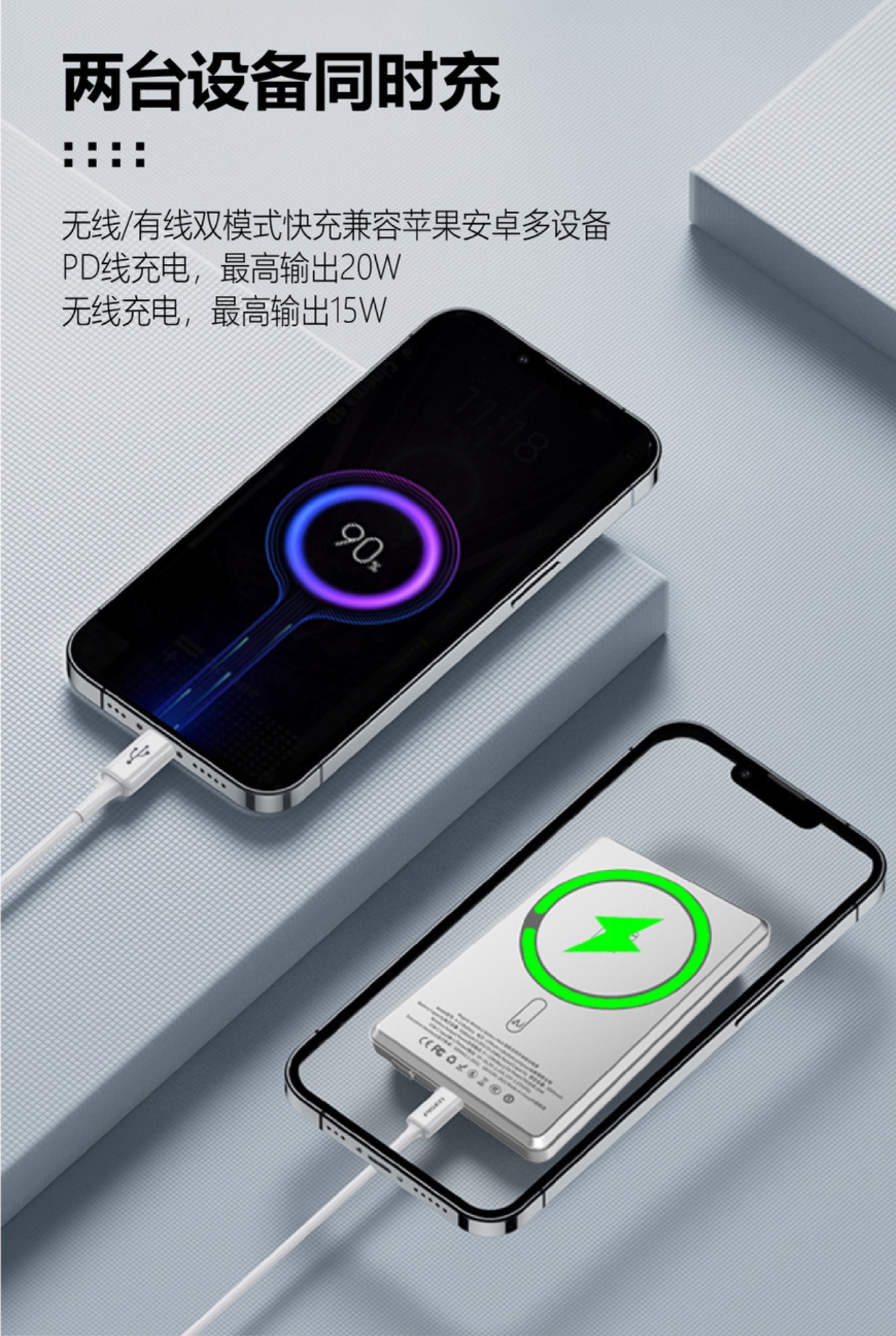 跨境电商私模超薄磁吸A13无线充电宝5000mAh