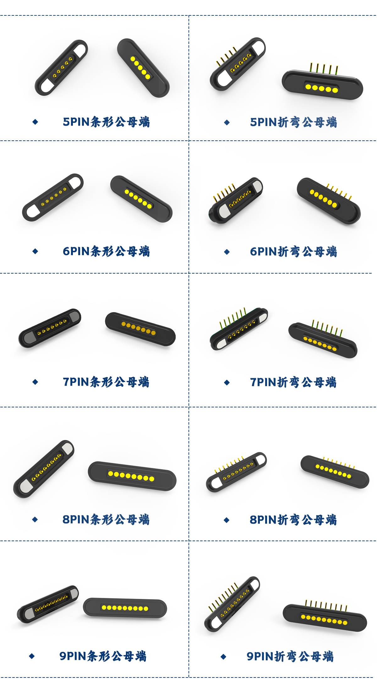 9pin磁吸连接器条形公母端大吸附力磁吸吸附伸缩现货