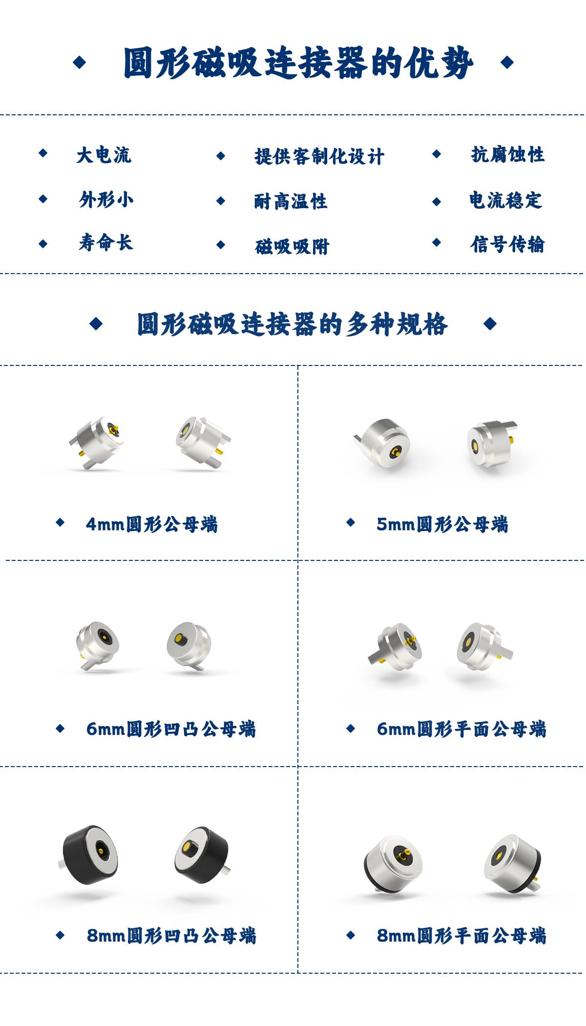 6mm圆形磁吸连接器对吸公母端超强吸附力大电流