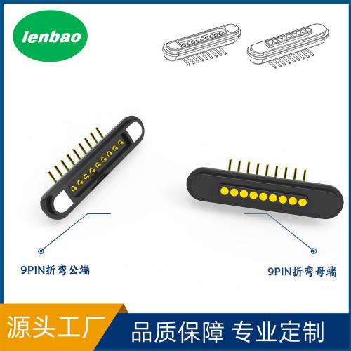 9pin折弯磁吸连接器磁吸吸附公母座弹簧伸缩针标准品