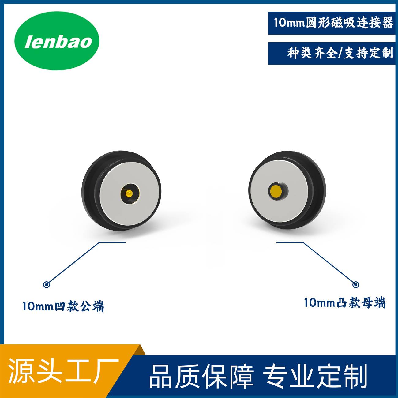 10mm圆形磁吸连接器凹凸带盘款磁吸对吸公母端伸缩弹簧针