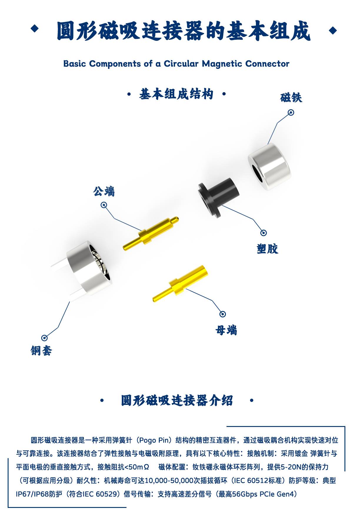 圆形10mm磁吸连接器超大吸附力大电流对吸公母端标准品现货