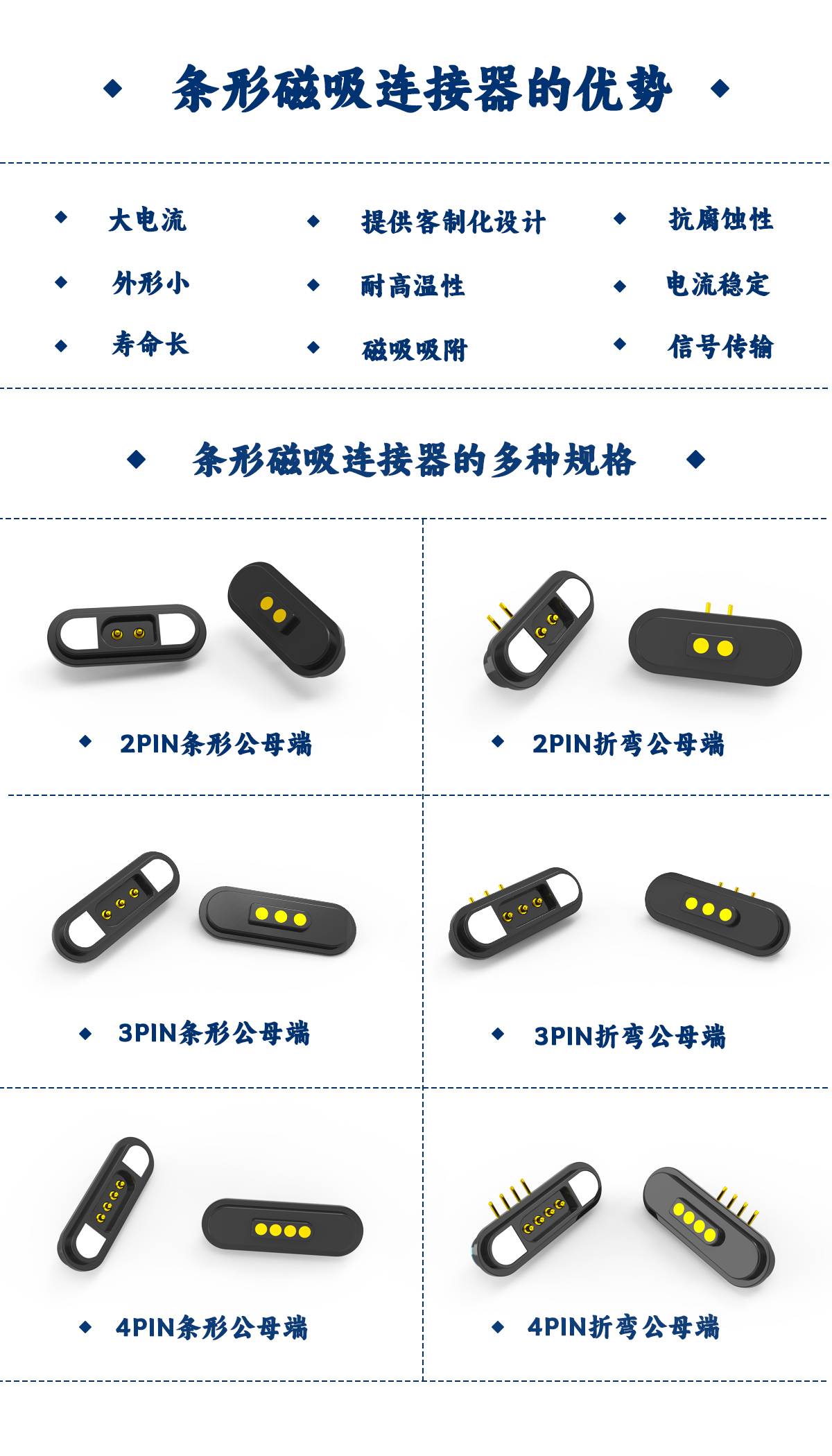 2pin磁吸连接器对吸公母端充电伸缩针磁吸接头标准品现货