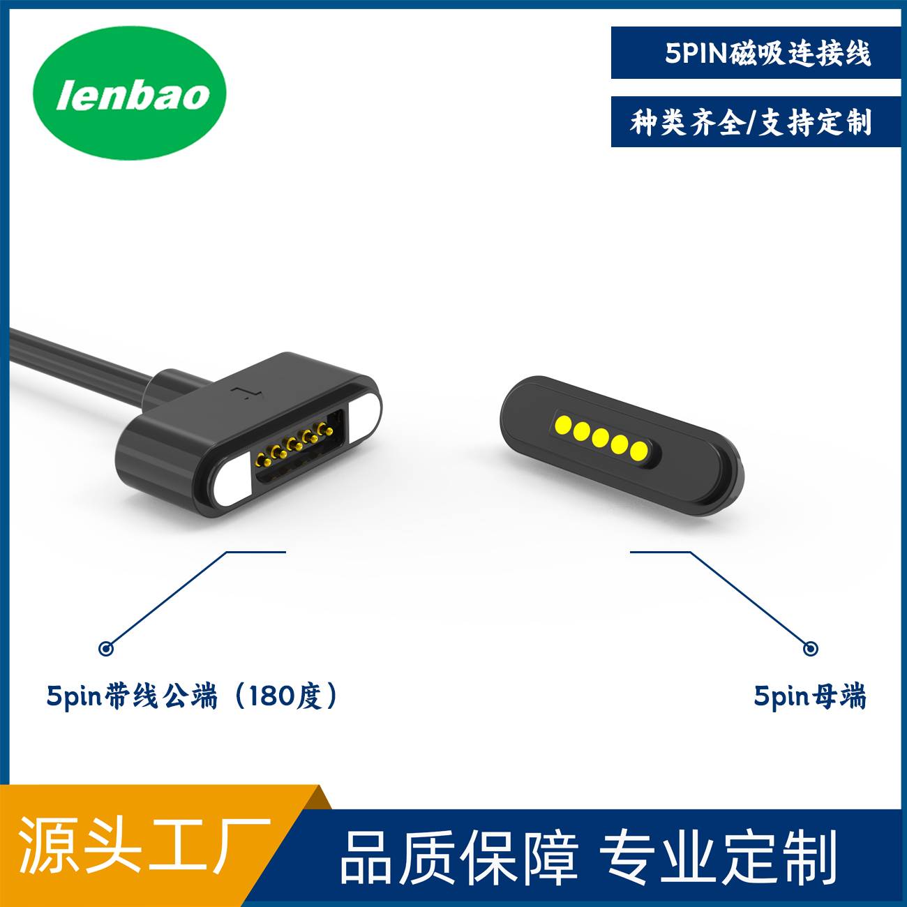 5pin磁吸连接线磁吸吸附大电流信号传输充电线180度带线公母端