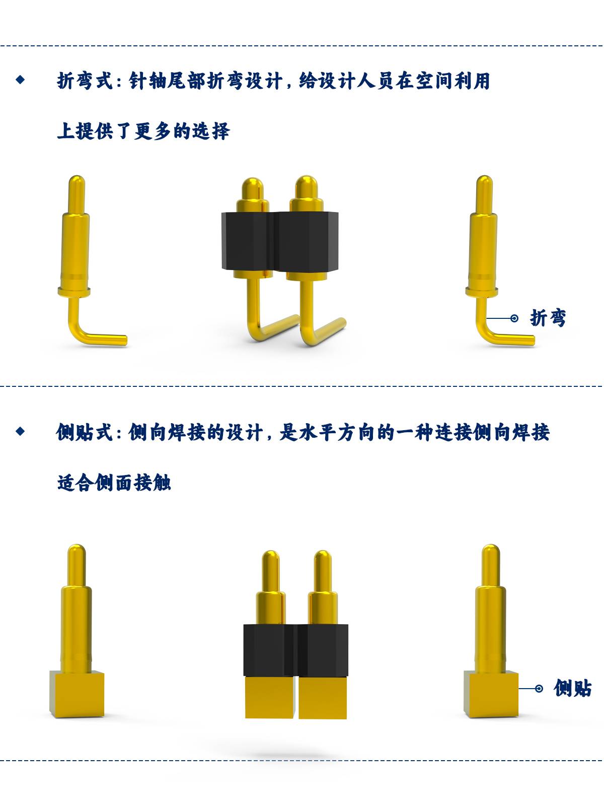 3pin折弯款pogopin连接器镀金弹簧伸缩连接充电导信号