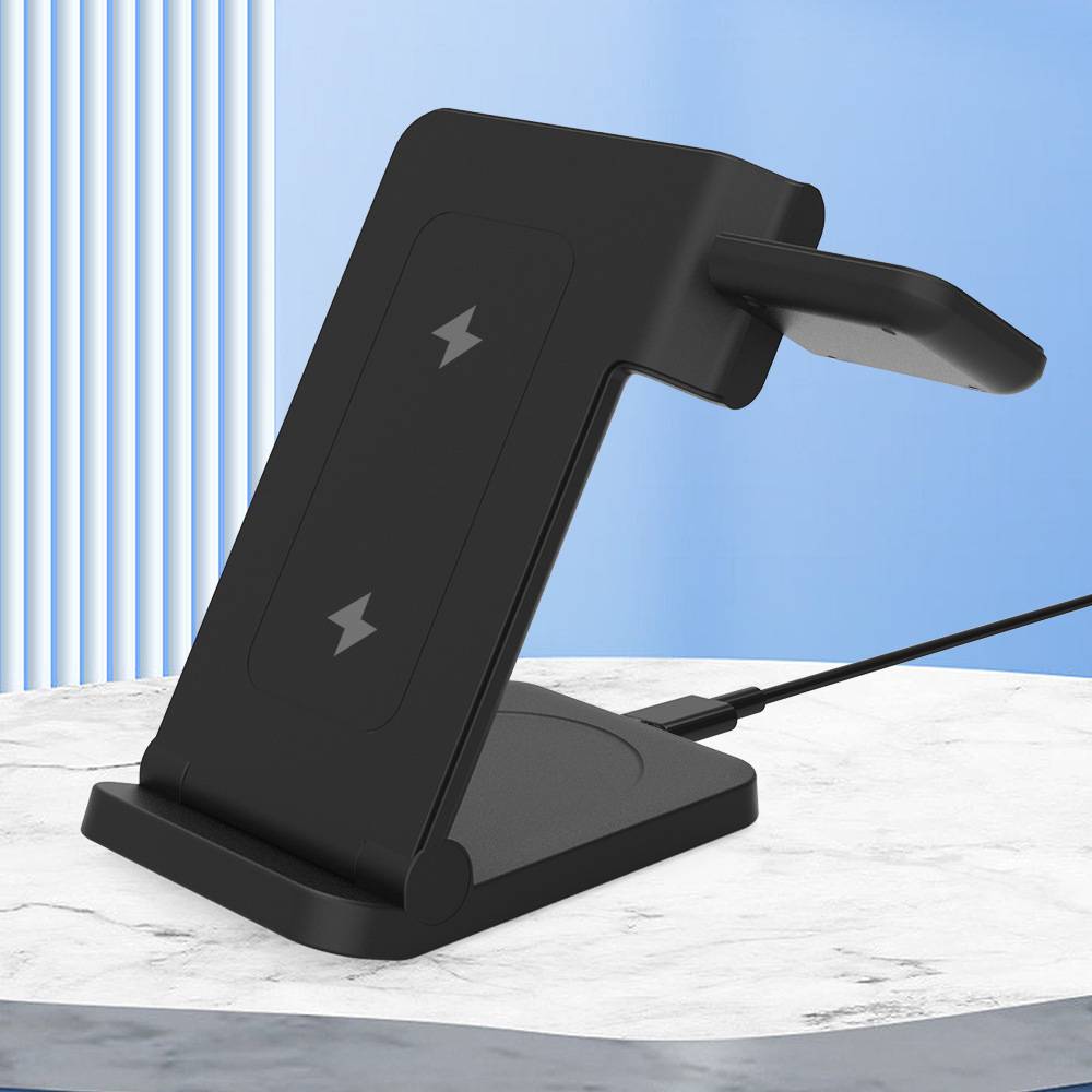 跨境新品立式三合一无线充 360度旋转苹果手机手表耳机全适用