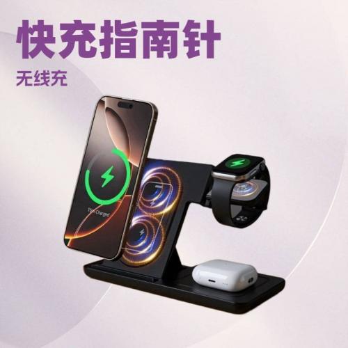 磁吸无线充电器适用苹果手机支架三合一无线充快充跨境新款爆款