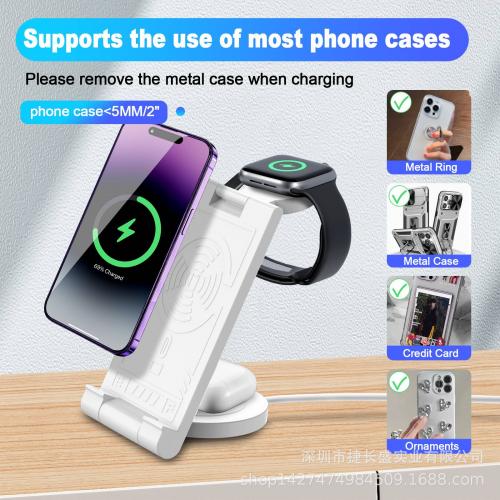 适用于三星苹果手表手机无线充电器3合1立式折叠15w 外贸热销款