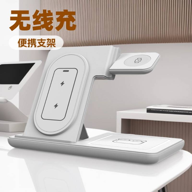 外贸三合一无线充电器支架无线充适用手机桌面耳机磁吸充