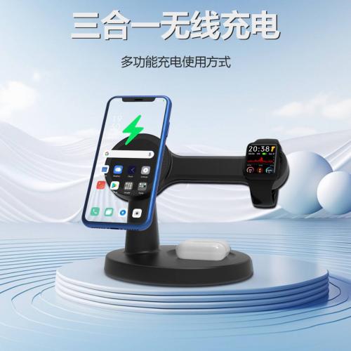 源厂磁吸无线充电器三合一多功能底座支持手机手表耳机同步充电