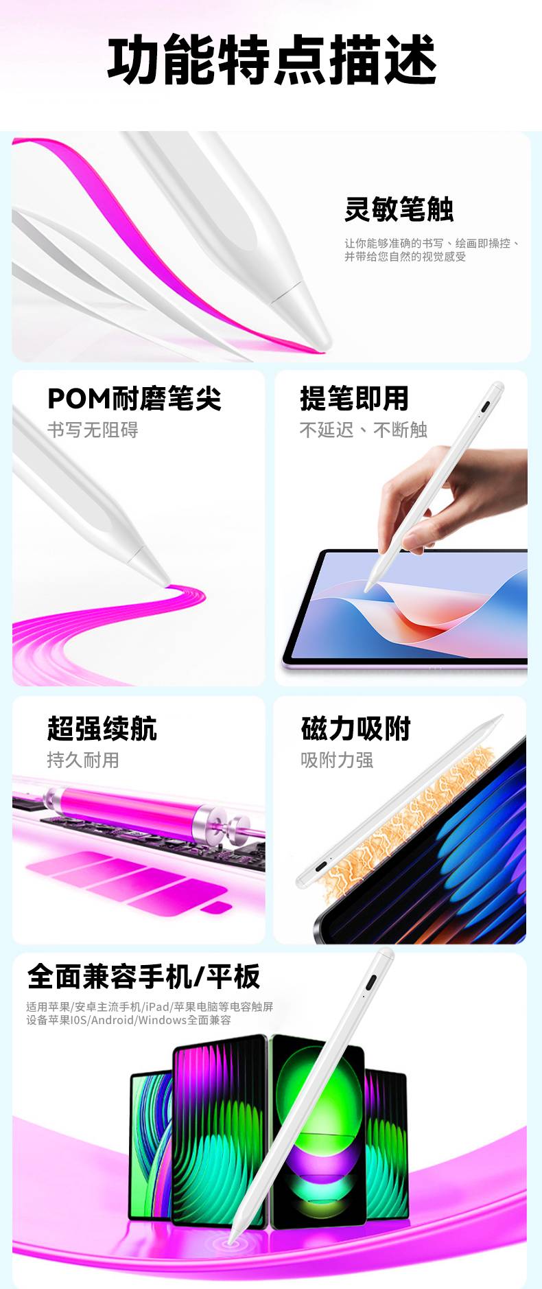 华为平板通用磁力吸附触控笔电容笔/渐变款
