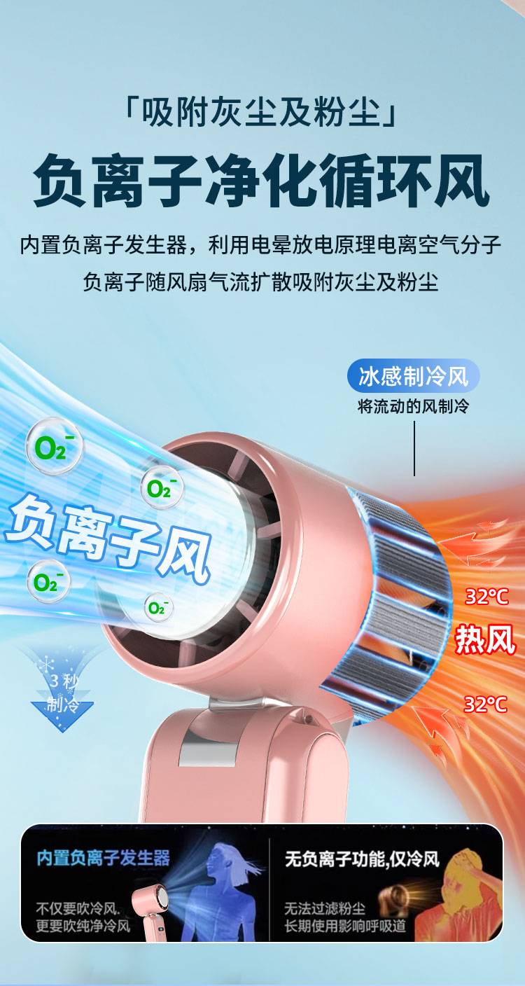 HF810负氧离子风扇,高速2万转大风力瞬间降温,大量负氧离子输出,净化空气,享受天然氧吧,呵护您和家人的健康!