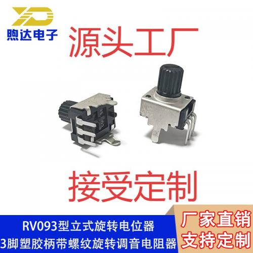 RV093型卧式旋转电位器3脚塑胶柄带螺纹旋转调音电阻器