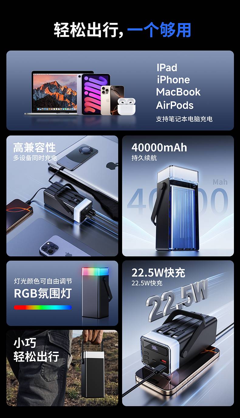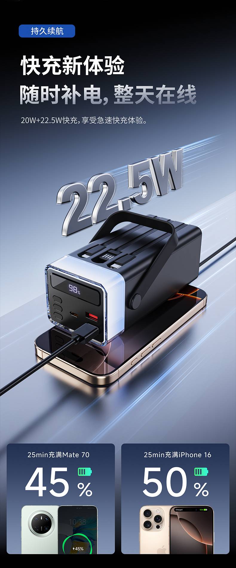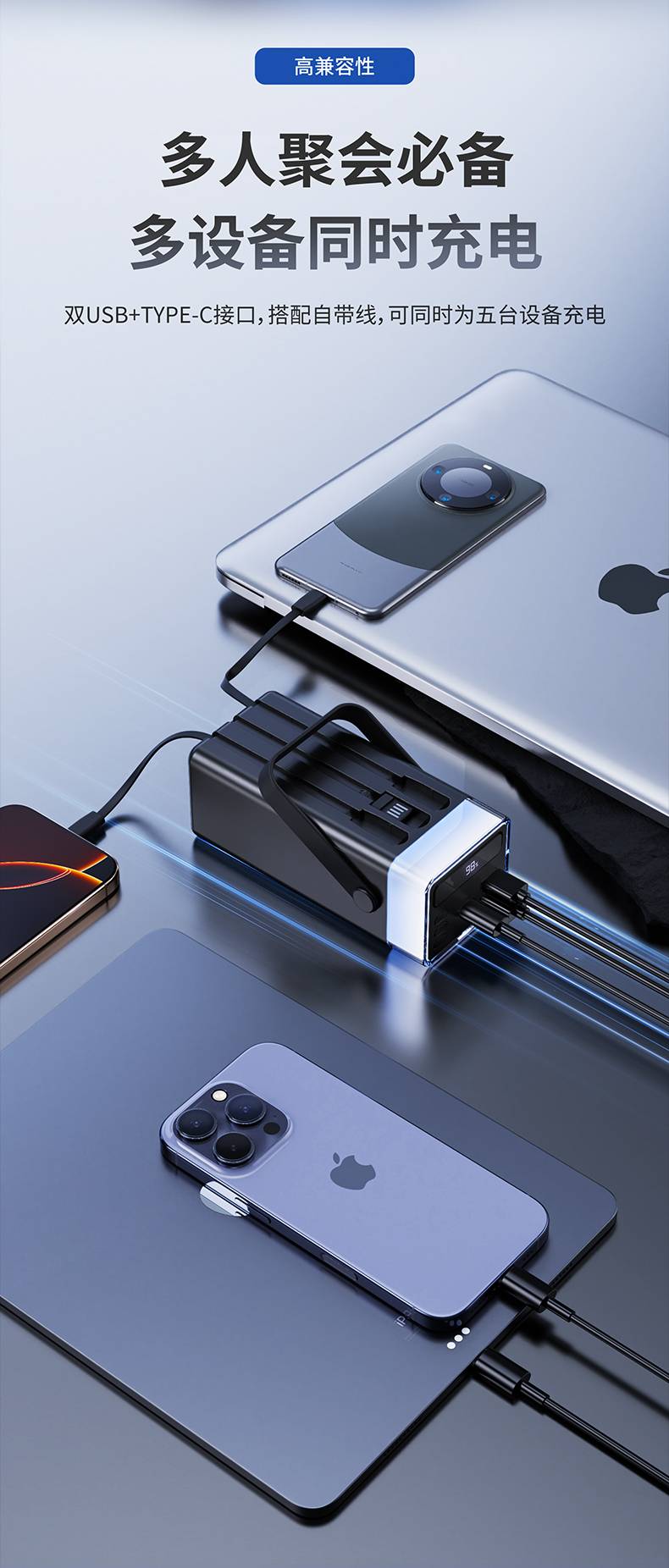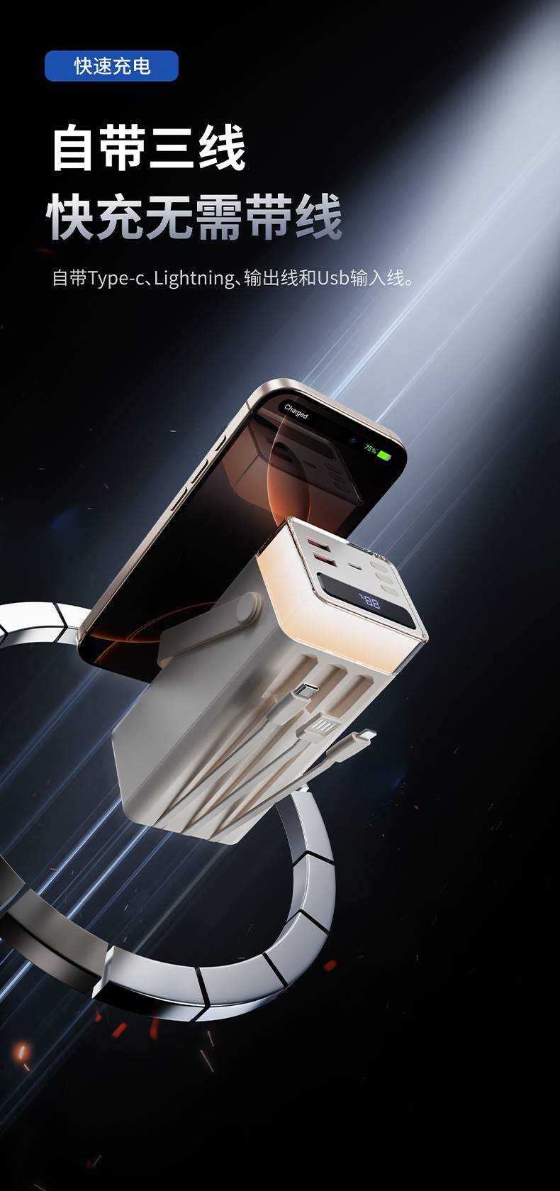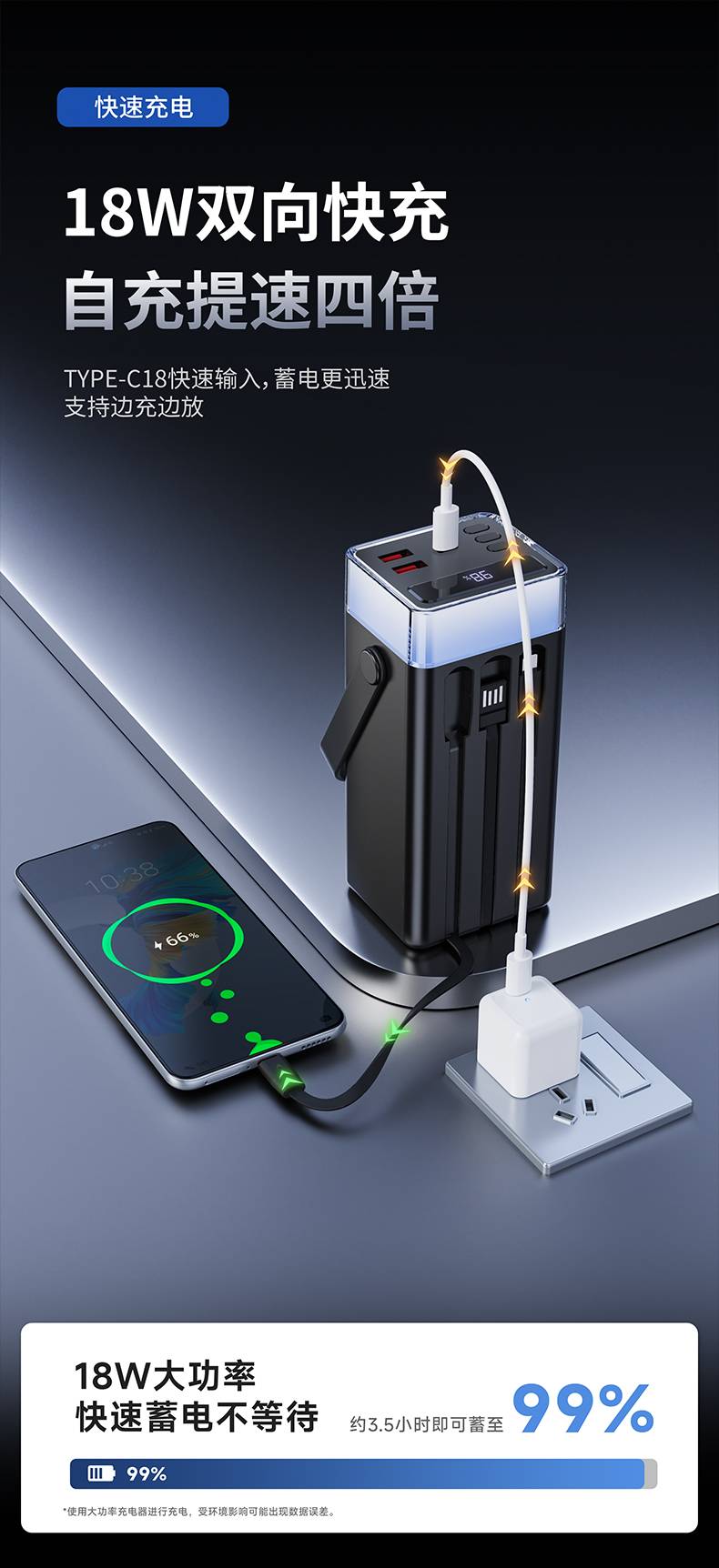 自带双线大容量3W毫安充电宝移动电源 LH19