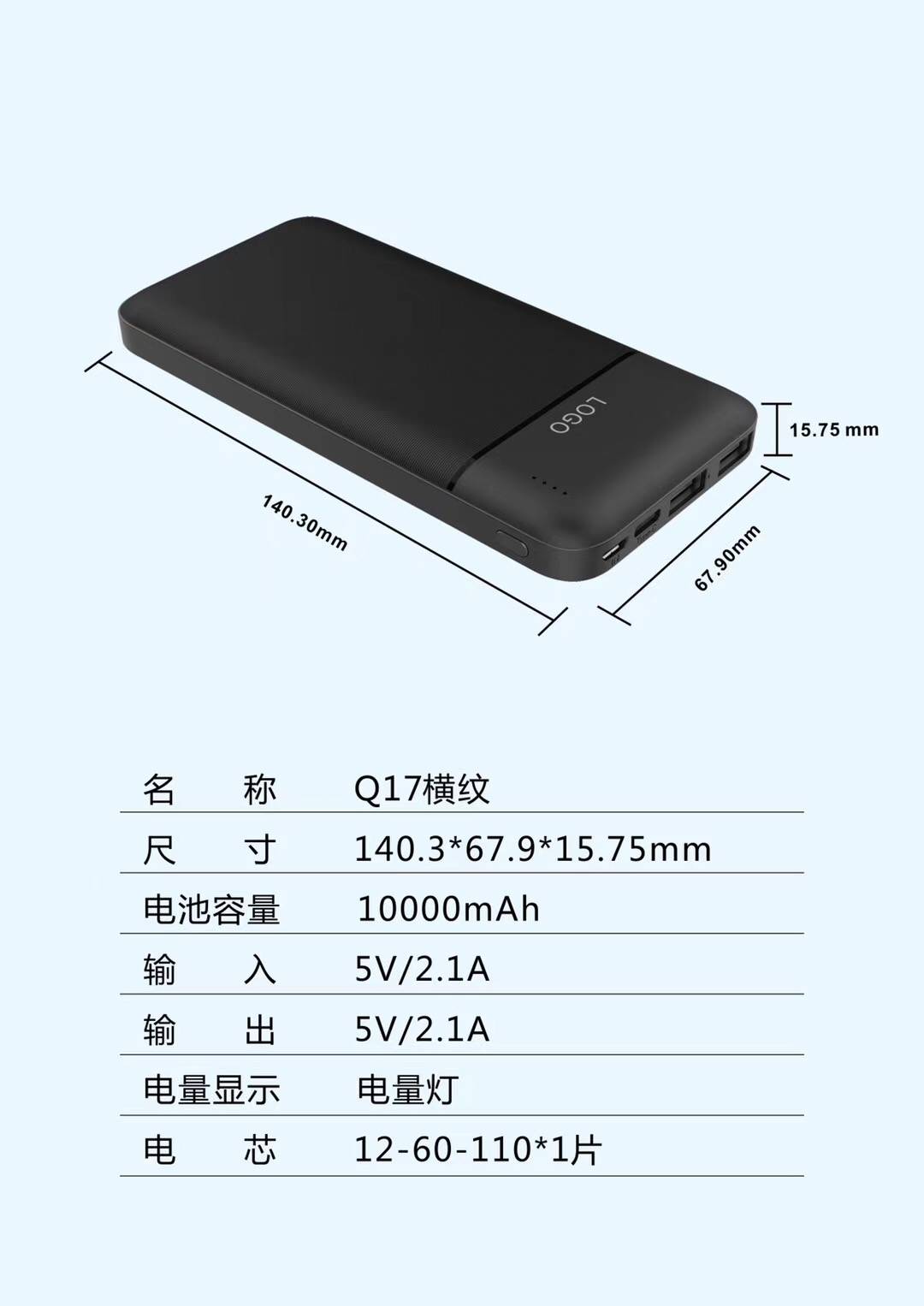 充电宝套料 Q17A 双U横纹