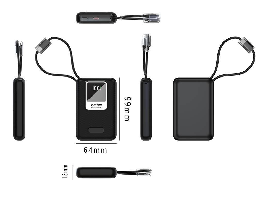 自带三线大容量22.5W快充充电宝移动电源套料