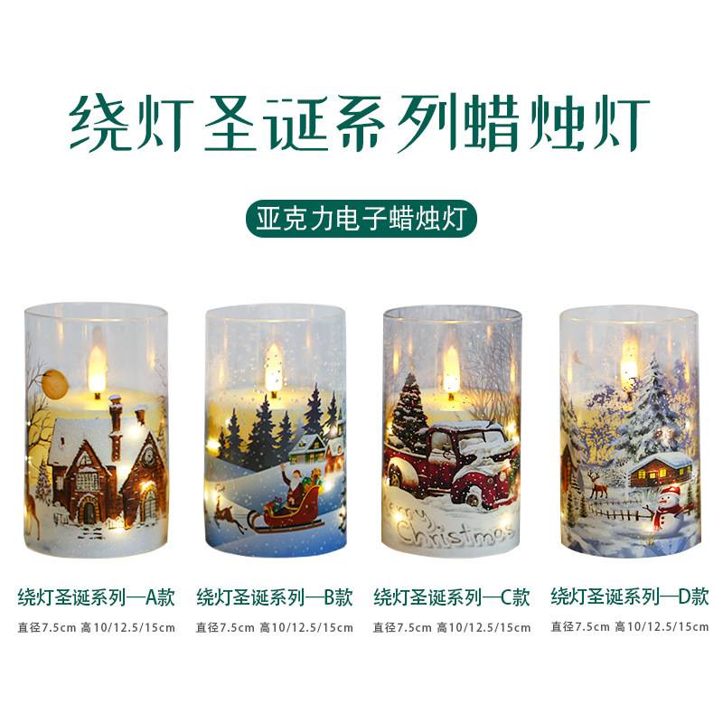 热卖跨境圣诞亚克力贴花子弹头LED电子蜡烛灯装饰布置剧本杀氛围