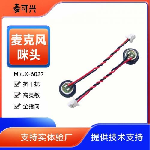 厂家供6027咪头带端子线高灵敏度传声器mic智能语音识别电容咪芯