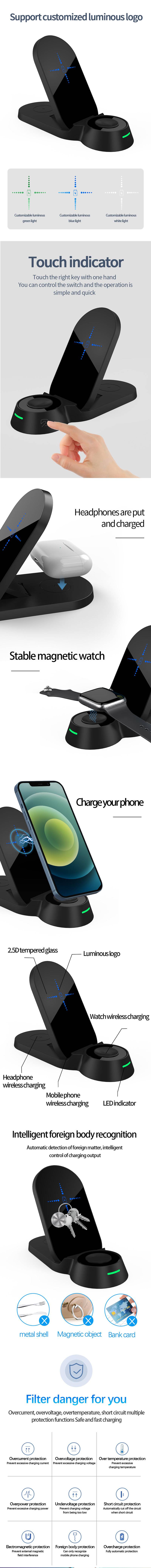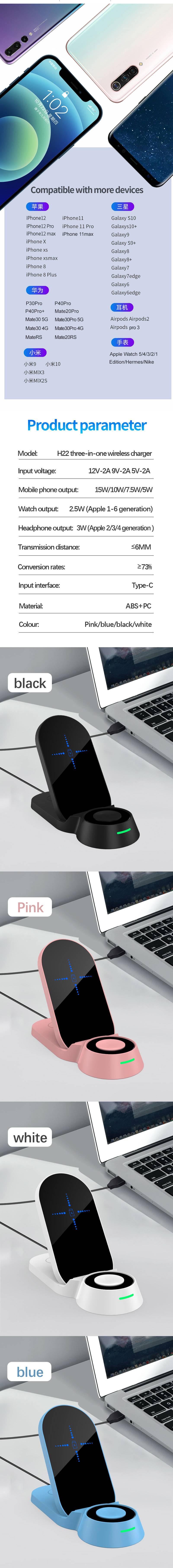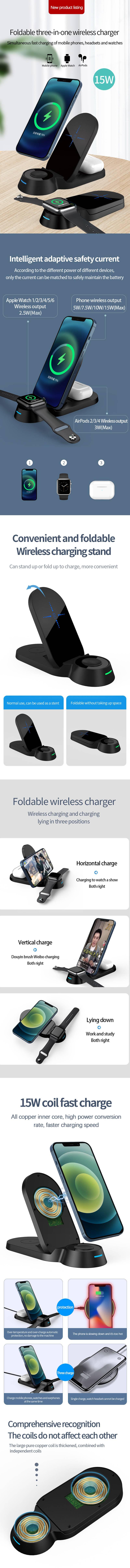 Foldable three in one wireless charger H22