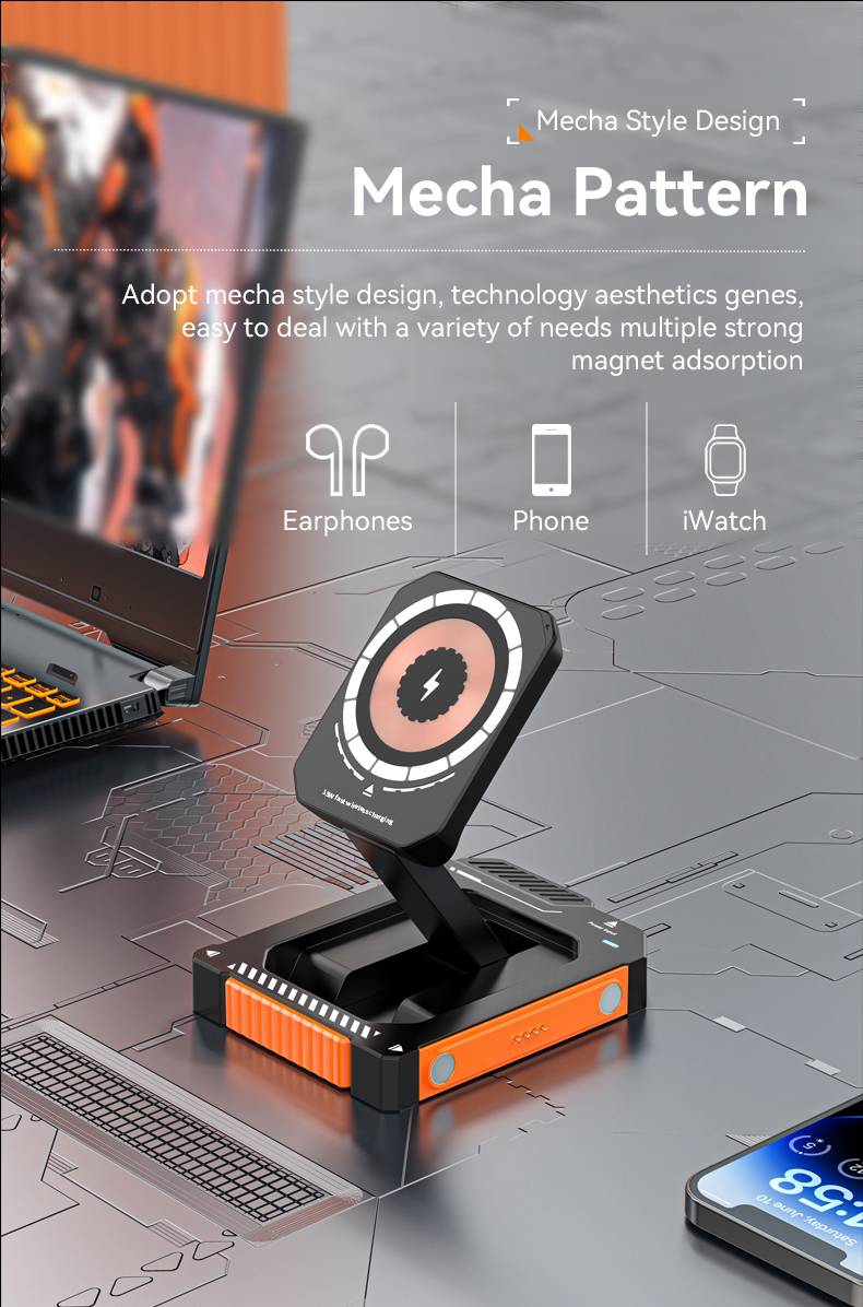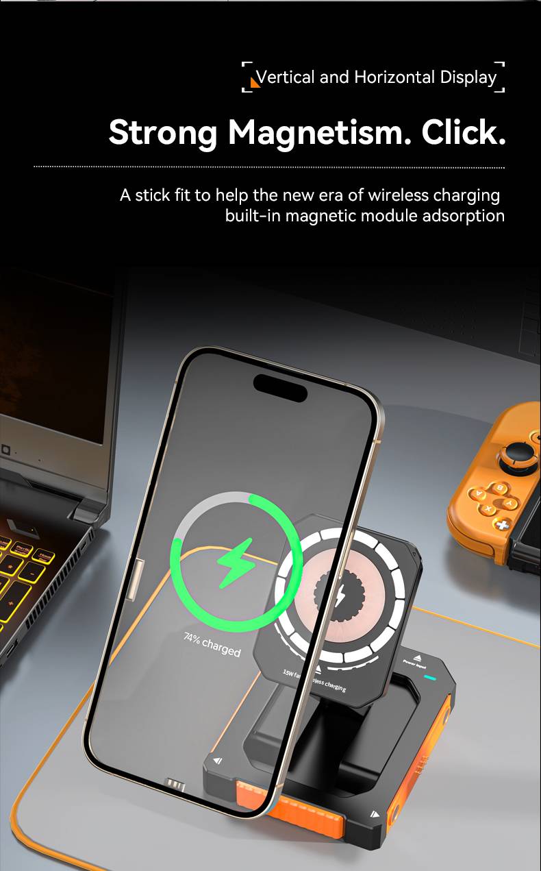 Three in one metal wireless charging base rotating 15W magnetic wireless charger bracket fast charging MX-CD12S