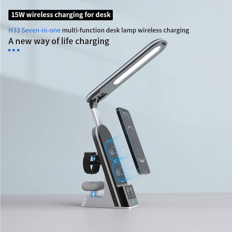 Seven in one desk lamp wireless charging supports charging for mobile phones, watches, and headphones