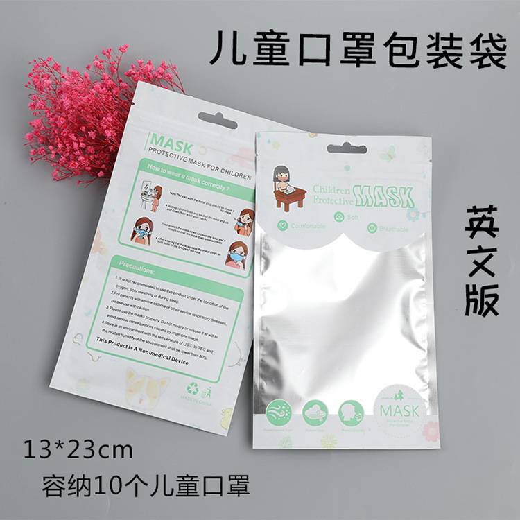 现货儿童口罩包装袋外贸一次性儿童口罩袋自封塑料彩袋中文版通用