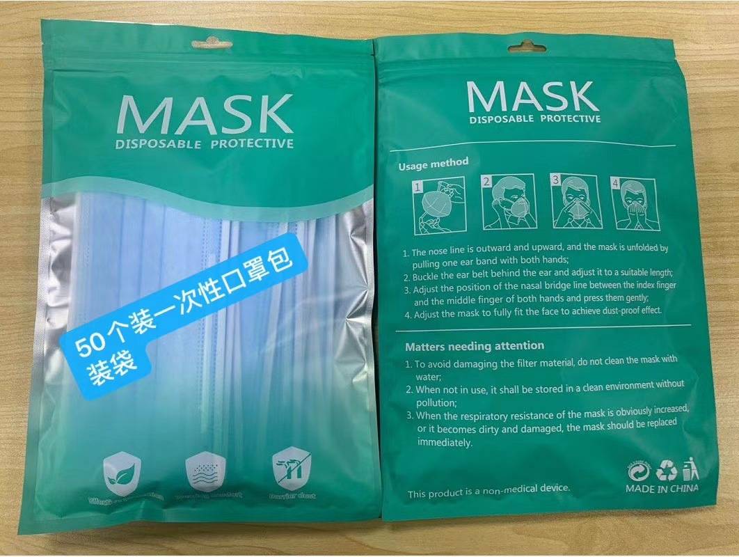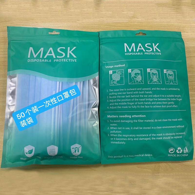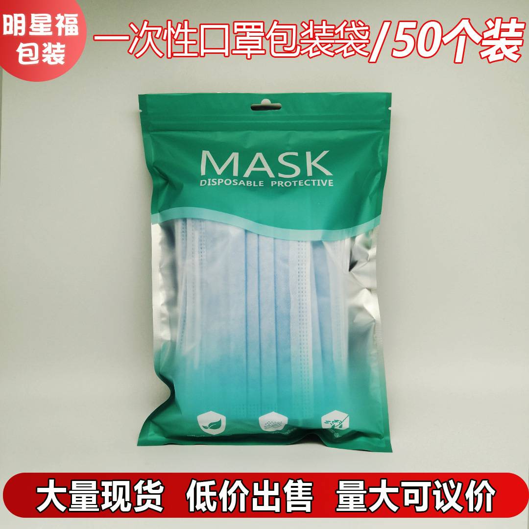 普通平面一次性口罩包装袋50个装现货 英文版KN95口罩袋 自封口袋