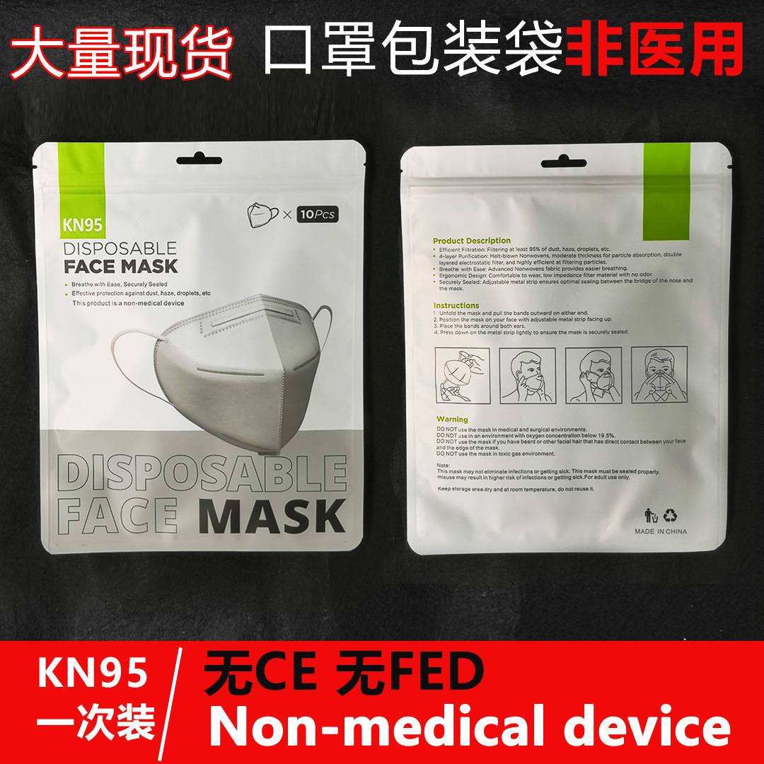 现货通用型一次性kn95口罩包装袋英文口罩袋子塑料袋厂家批发直销