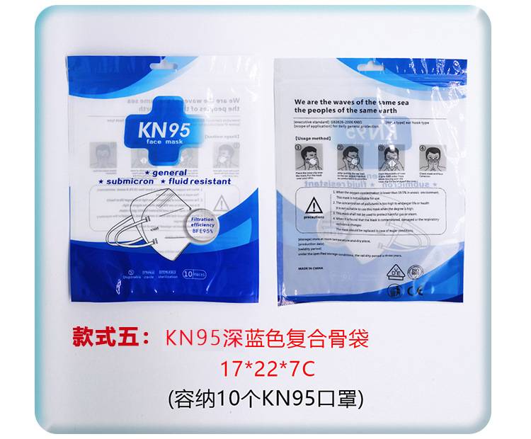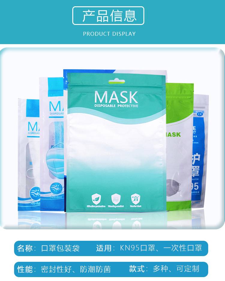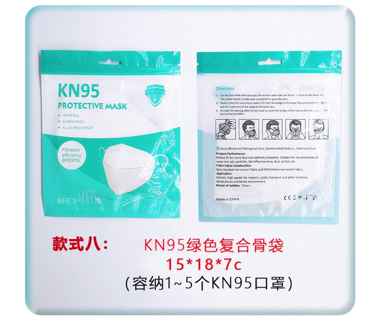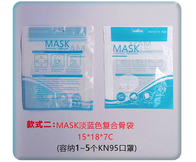 现货一次性口罩包装袋子彩色KN95口罩阴阳骨袋外贸英文口罩塑封袋